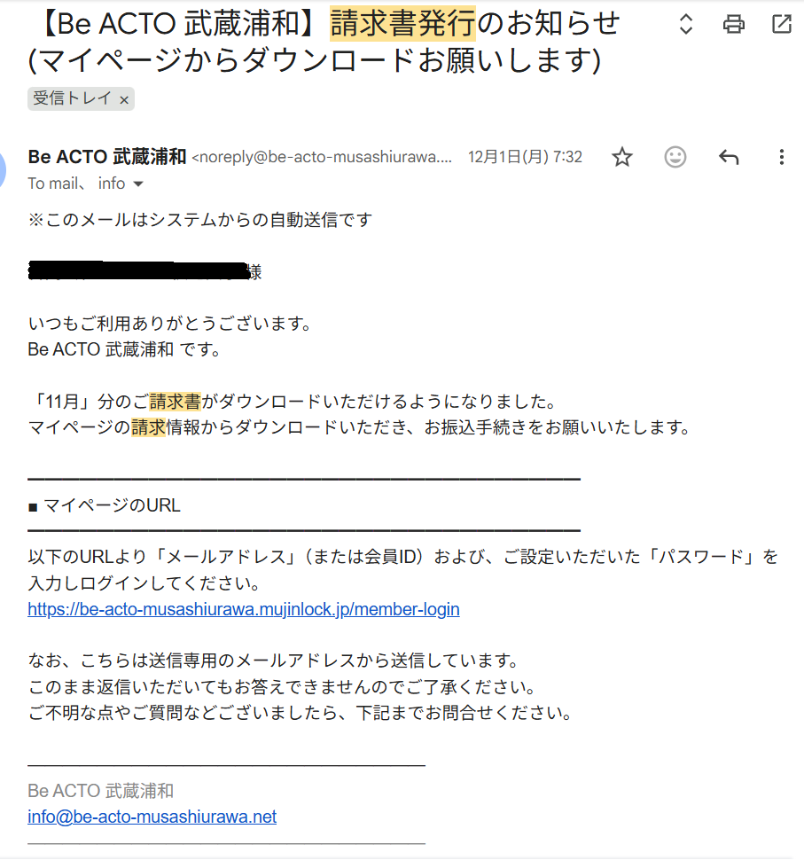 ⑵ 通知メールに表示されている「マイページのURL」にアクセス